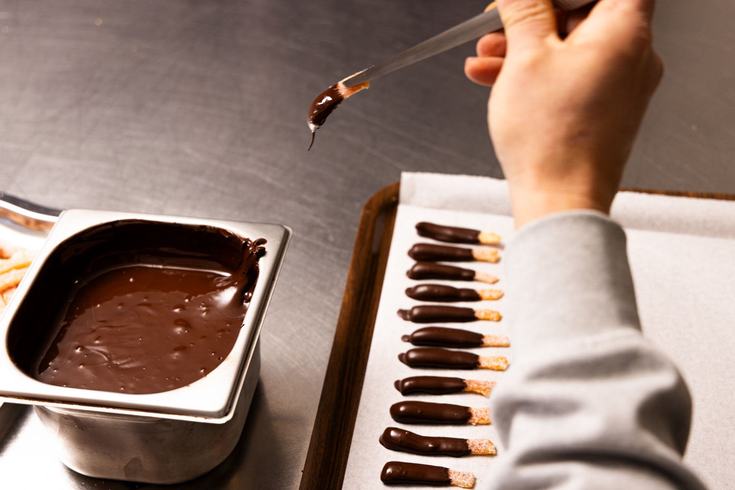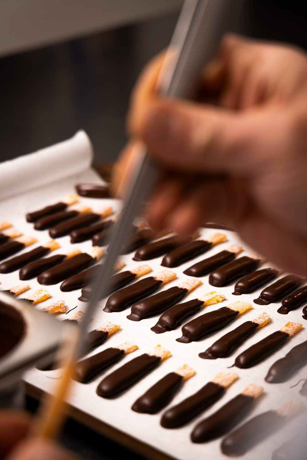 Zeer langzaam gekonfijte sinaasappelschil, intens gedoopt in pure chocolade… Orangettes zijn het perfecte samenspel van fris, bitter en zoet.